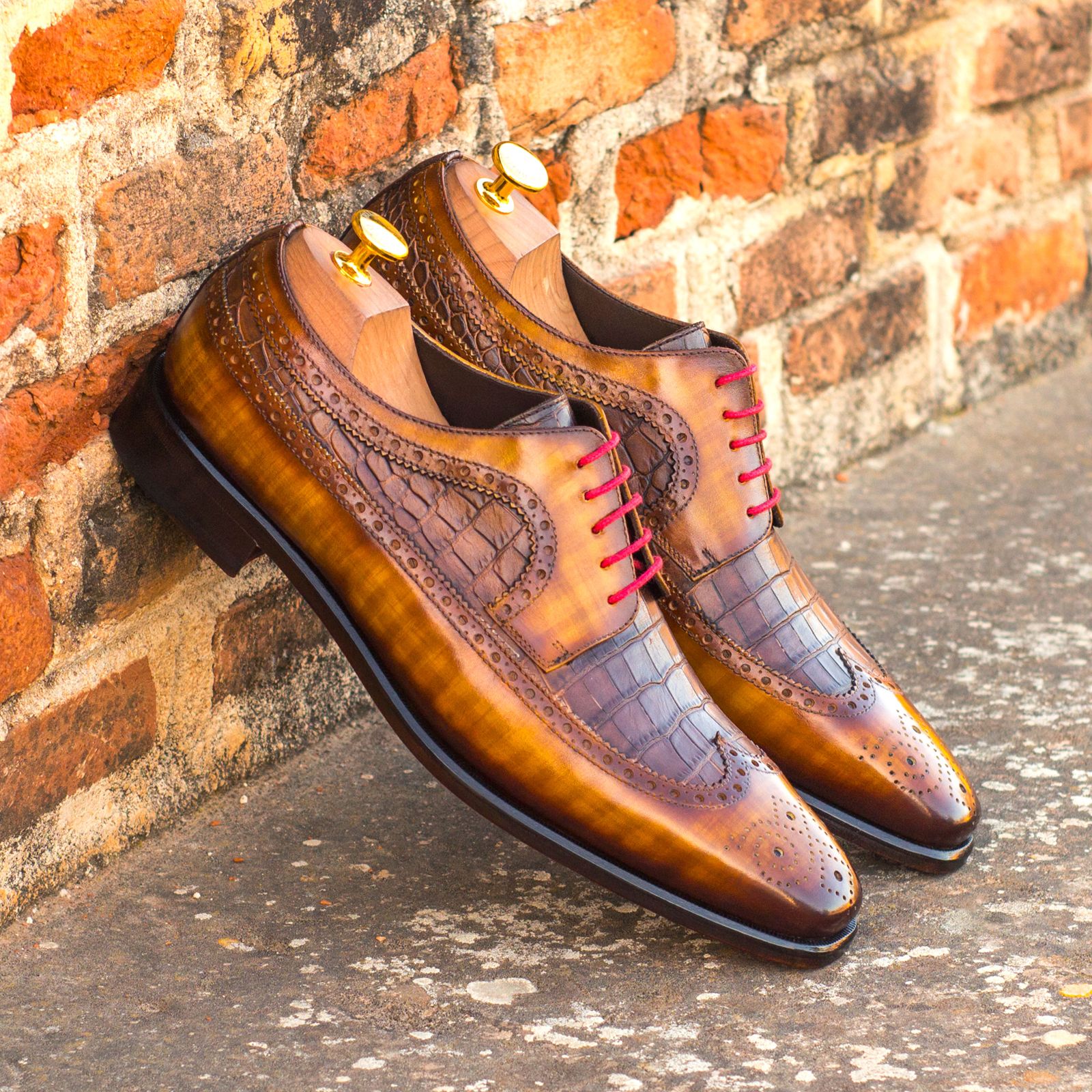 Materials: dark brown painted croco, cognac patina